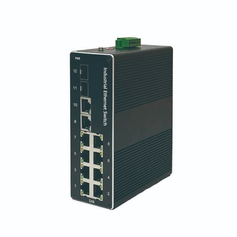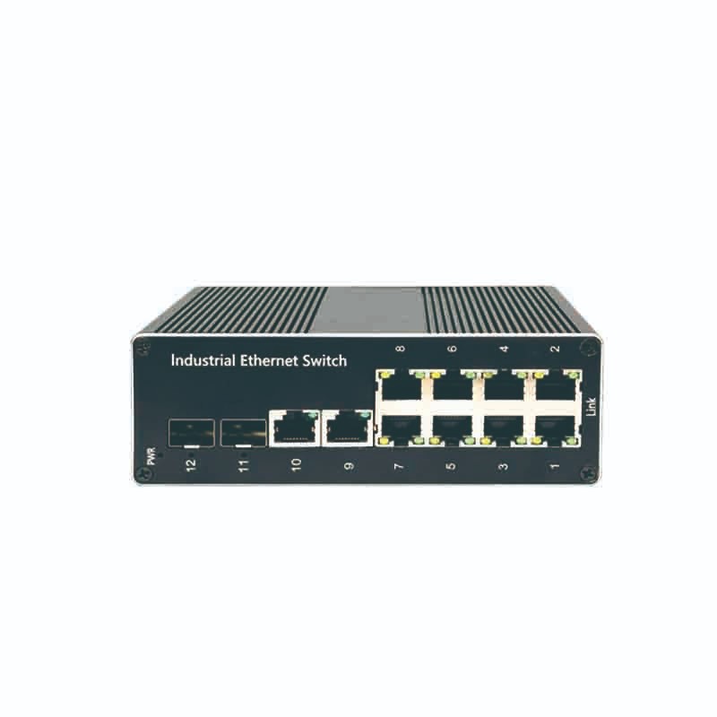 The switch provides 8 Fast Ethernet 10/100Base-TX RJ45 ports for edge device connectivity, 2 Gigabit 10/100/1000Base-TX RJ45 ports for high-speed copper aggregation, and 2 Gigabit fiber ports supporting 1000Base-FX media in SC, ST, FC or SFP interfaces to accommodate different project requirements. All ports support full line-speed forwarding with store-and-forward switching to ensure stable packet delivery in industrial traffic patterns.