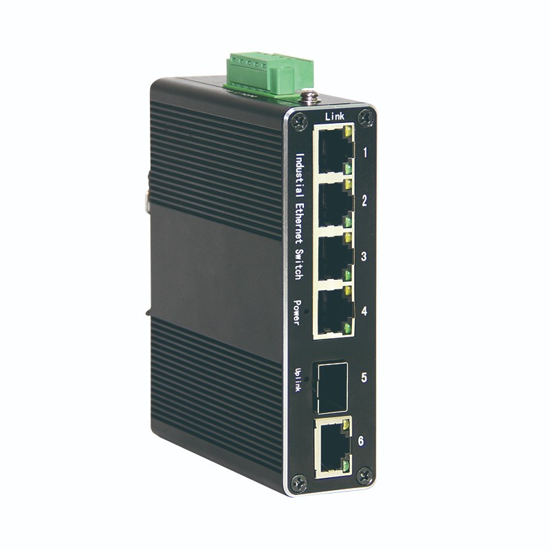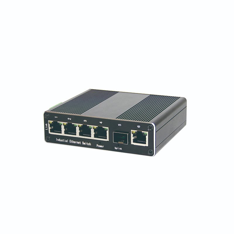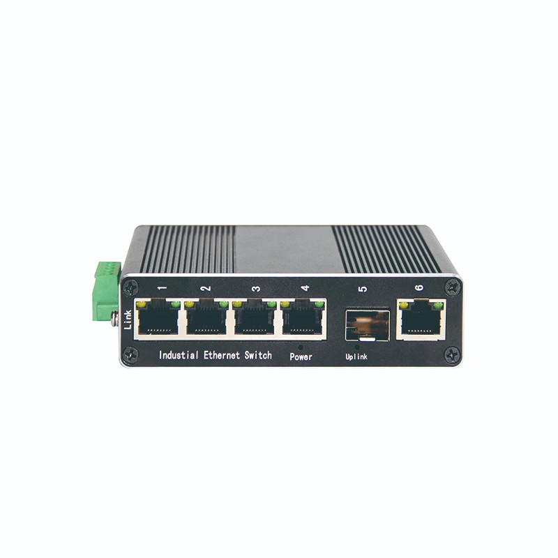 Typical applications include production line networks, machine cells, distributed control cabinets, and remote monitoring systems. A common topology connects multiple edge devices to the five Gigabit copper ports, then uses the SFP fiber uplink to connect to a core switch or aggregation switch over longer distance. This topology is often selected when copper distance is limited or when EMI, grounding, and surge exposure make fiber a more reliable uplink medium.